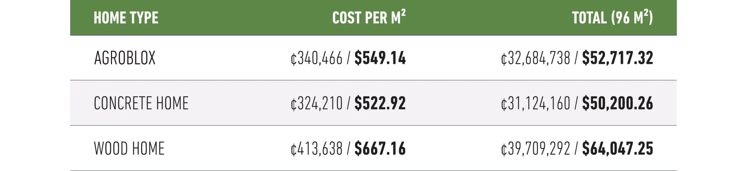 We compared the cost of building a 96 m² home with AGROBLOX, concrete, and wood. AGROBLOX offers competitive pricing with superior comfort and sustainability.